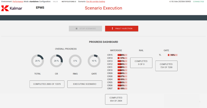 Once the terminal is at steady operation phase fine-tune parameters, for example, to find the optimal balance between Landside and Waterside operations or explore different charging schedules for battery-electric CHE. Emulation tools can also be used for training to ensure operators know how to act in different operational scenarios. In emulation, it is possible to recreate the same scenario repeatedly and train operators without interrupting production or moving physical boxes.