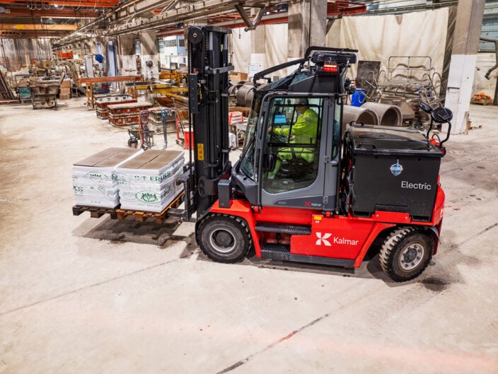 Our latest generation of electric forklifts, the Kalmar ECG50–90 offers optimum battery usage for up to 15 per cent longer operational time than previous-generation trucks. It also boasts a market-leading diagnostic system that boosts your uptime, and easy maintenance.