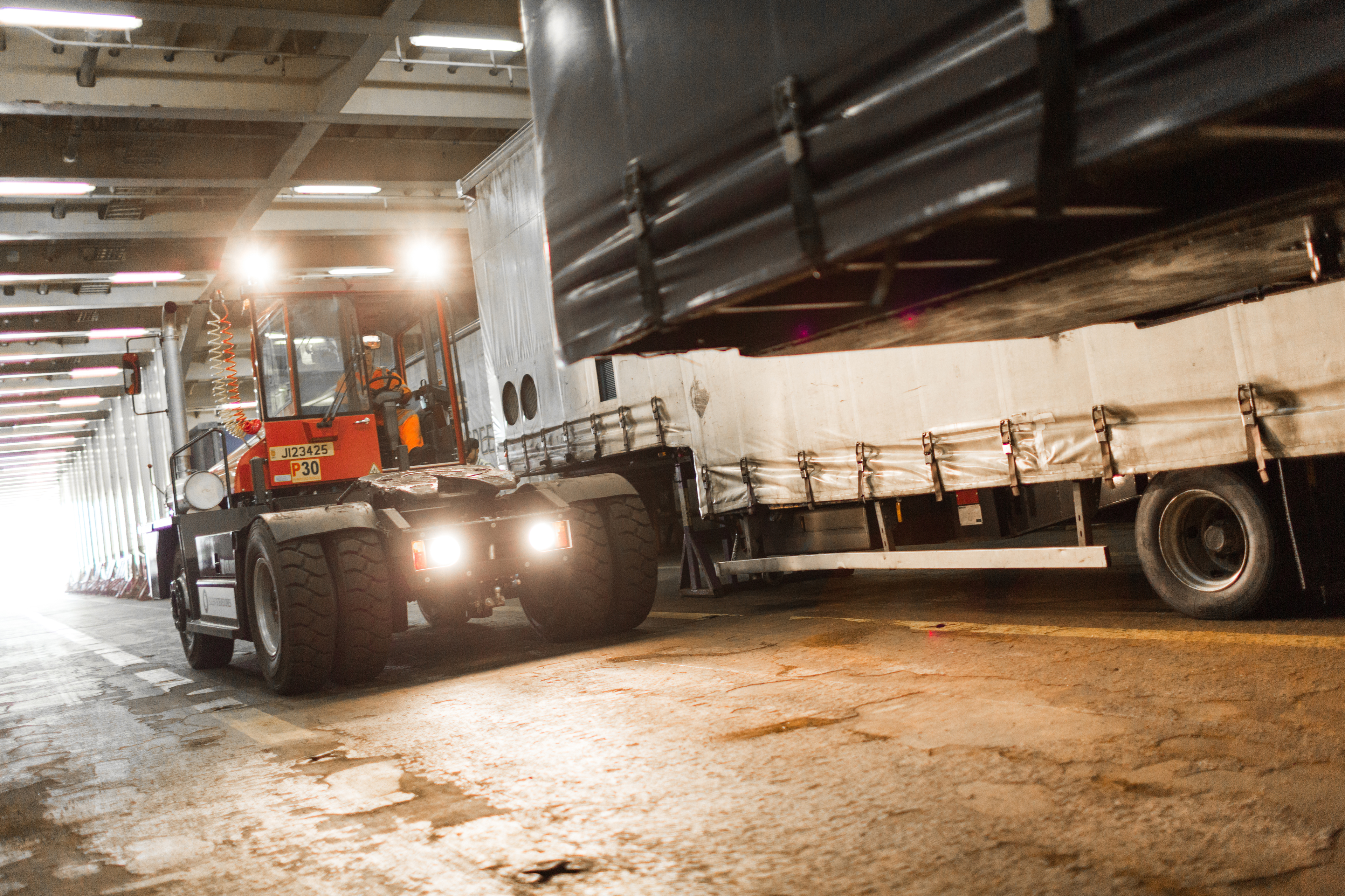 Kalmar terminal tractors can easily be adapted to meet the various needs of cargo handling in ports and terminals. They can handle semitrailers, terminal trailers for containers and roll trailers with goosenecks. For RoRo handling, Kalmar 4WD heavy duty tractors have a high tractive effort to easily climb steep ramps and perform tight turns on slippery decks.