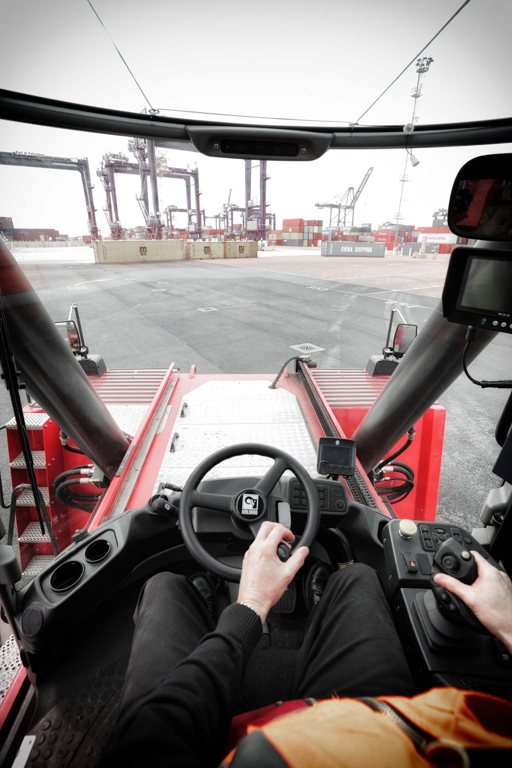 For drivers, the Kalmar EGO cabin offers an all-new operating experience with a panoramic view, intuitive interfaces and ergonomically designed controls. With Gloria's technology delivering an improved operator experience, safety standards have been considerably improved, including a reversing camera with integrated proximity sensors and a tyre-pressure monitoring system.