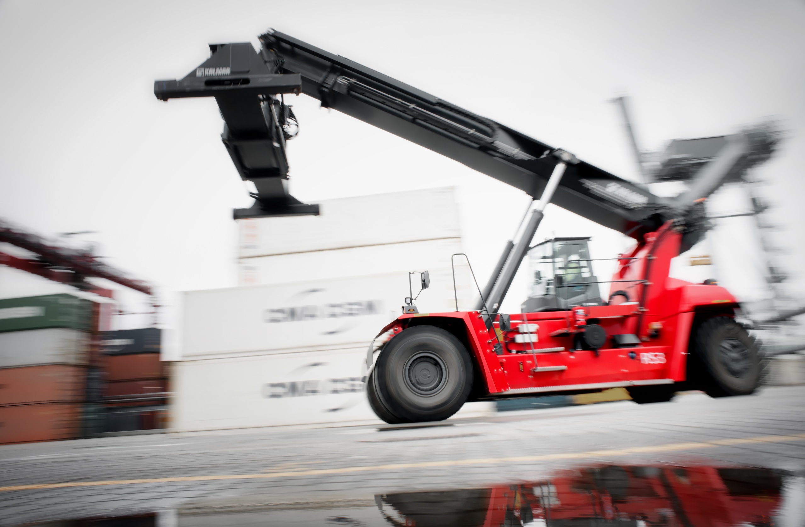 The first equipment that was launched with the K-Motion technology is the Kalmar Gloria DRG450 reachstacker with 6-6.5m wheel base, for container, intermodal and industrial handling. The maximum engine speed 1700rpm is designed to function with a lower decibel output. Therefore, the addition of K-Motion improves noise reduction even further, increasing the comfort of drivers and people nearby. Its greener design and lifetime value provide savings daily.