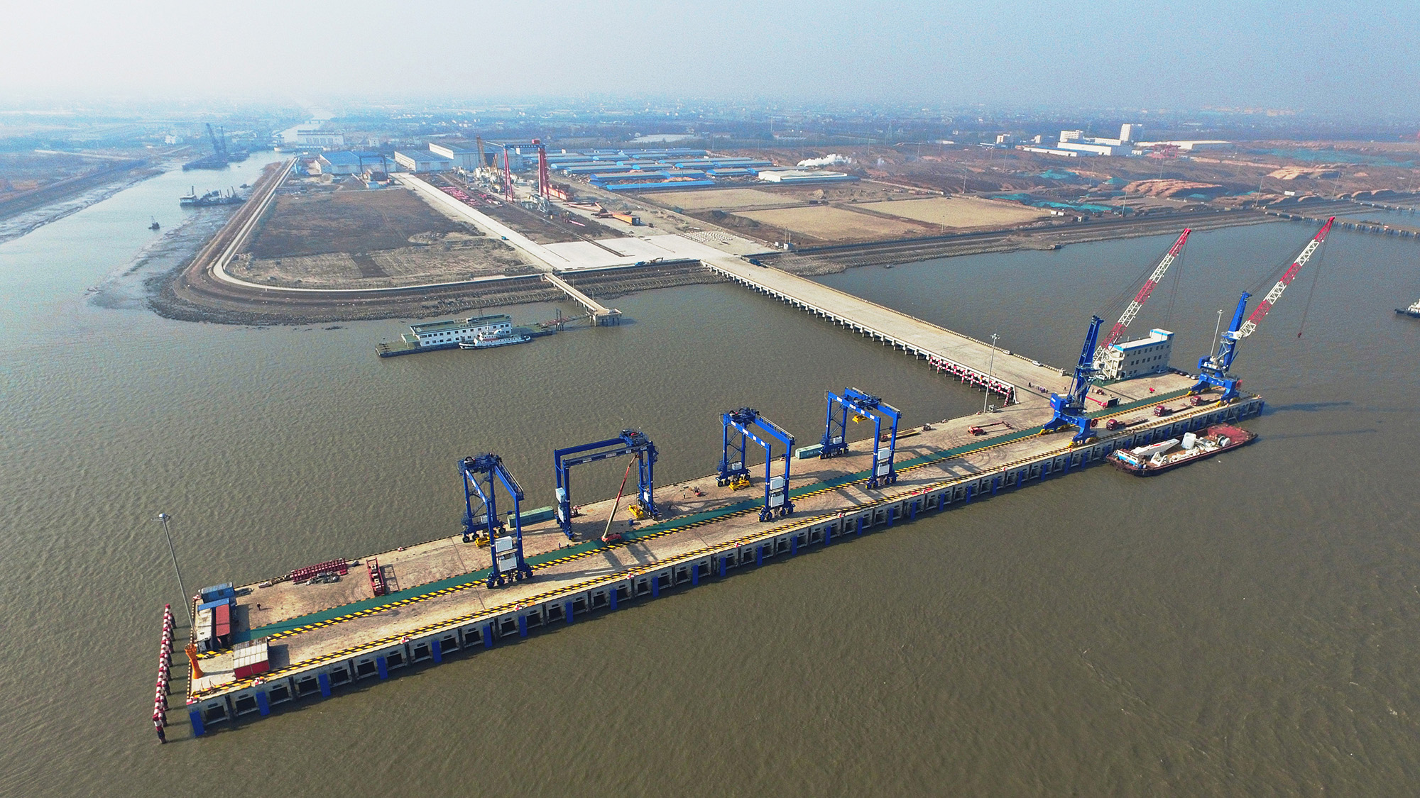 The new jetty will support Kalmar's business growth in the Asia-Pacific region by enabling the deliveries of fully erect Kalmar yard cranes from RCI. The jetty can berth vessels of up to 50,000 DWT capacities. It is 361 metres long and the water depth is 12 metres.