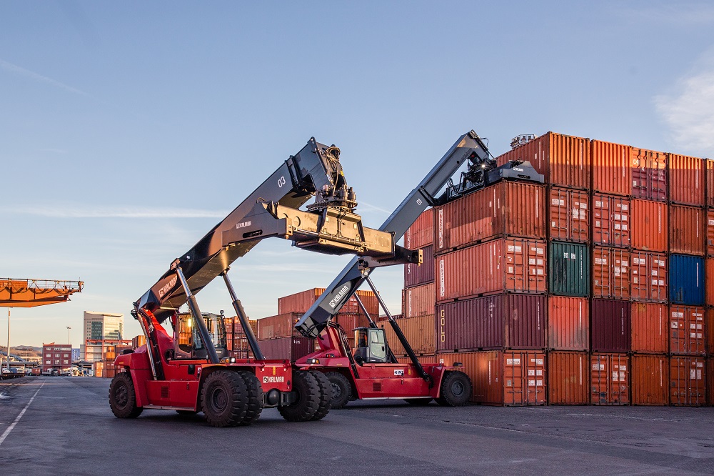 Each of the nine Kalmar Gloria DRG450 reachstackers have innovative features like the eco drive modes, and the Kalmar SmartFleet remote monitoring and reporting solution to help improve operational performance.
