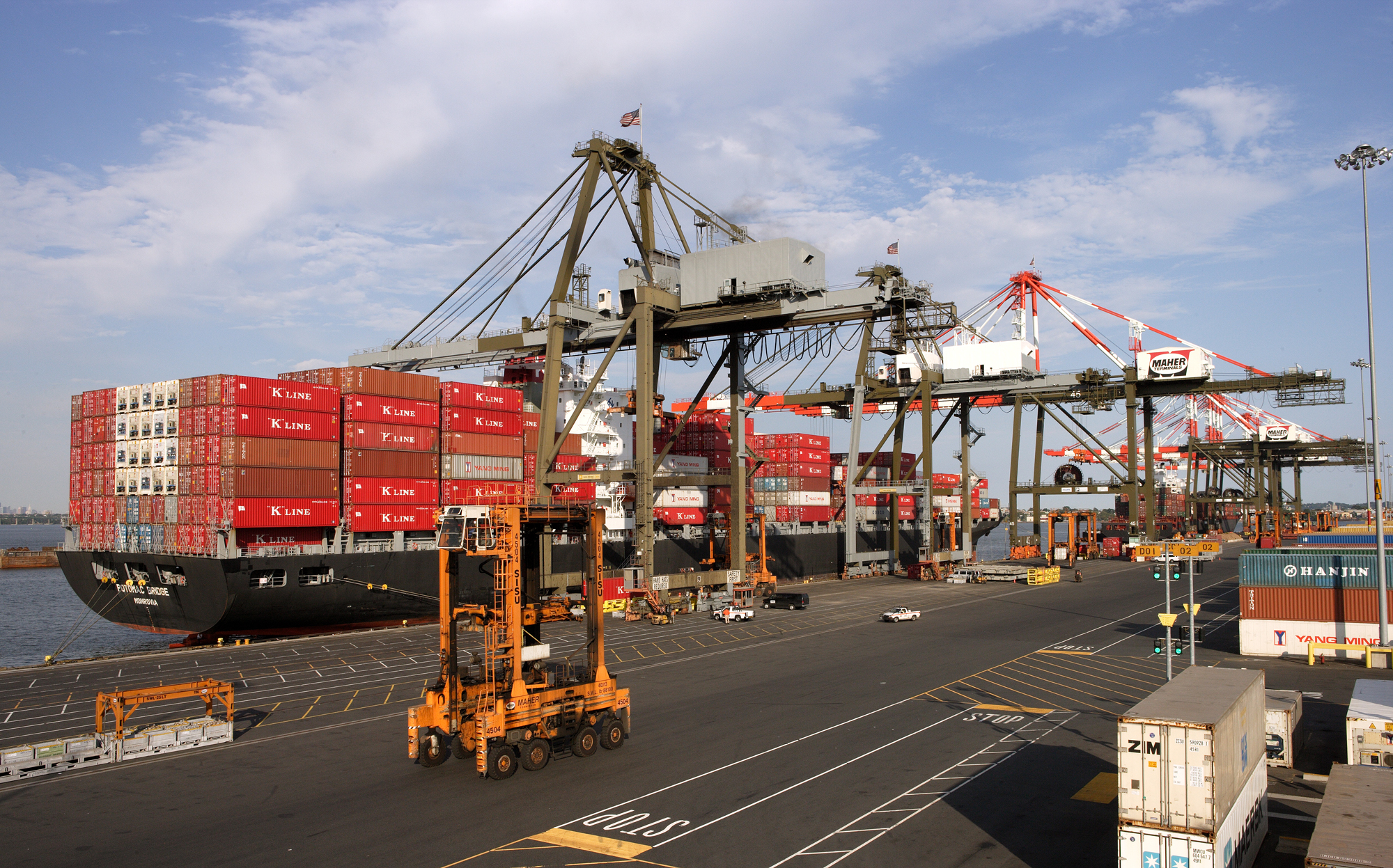 Maher Terminals is one of the largest privately held, multi-user container terminal operators in the world. The company has developed North America's largest marine container terminal in the Port of New York and New Jersey. The terminal covers a total area of approximately 500 acres (200 hectares) and has an estimated capacity of 2 million TEU. The new Kalmar Diesel-electric Straddle Carriers form part of Maher's comprehensive fleet renewal programme. The majority of the company's existing straddle carrier fleet is composed of Kalmar machines, which operate alongside a variety of other Kalmar equipment including reachstackers.
