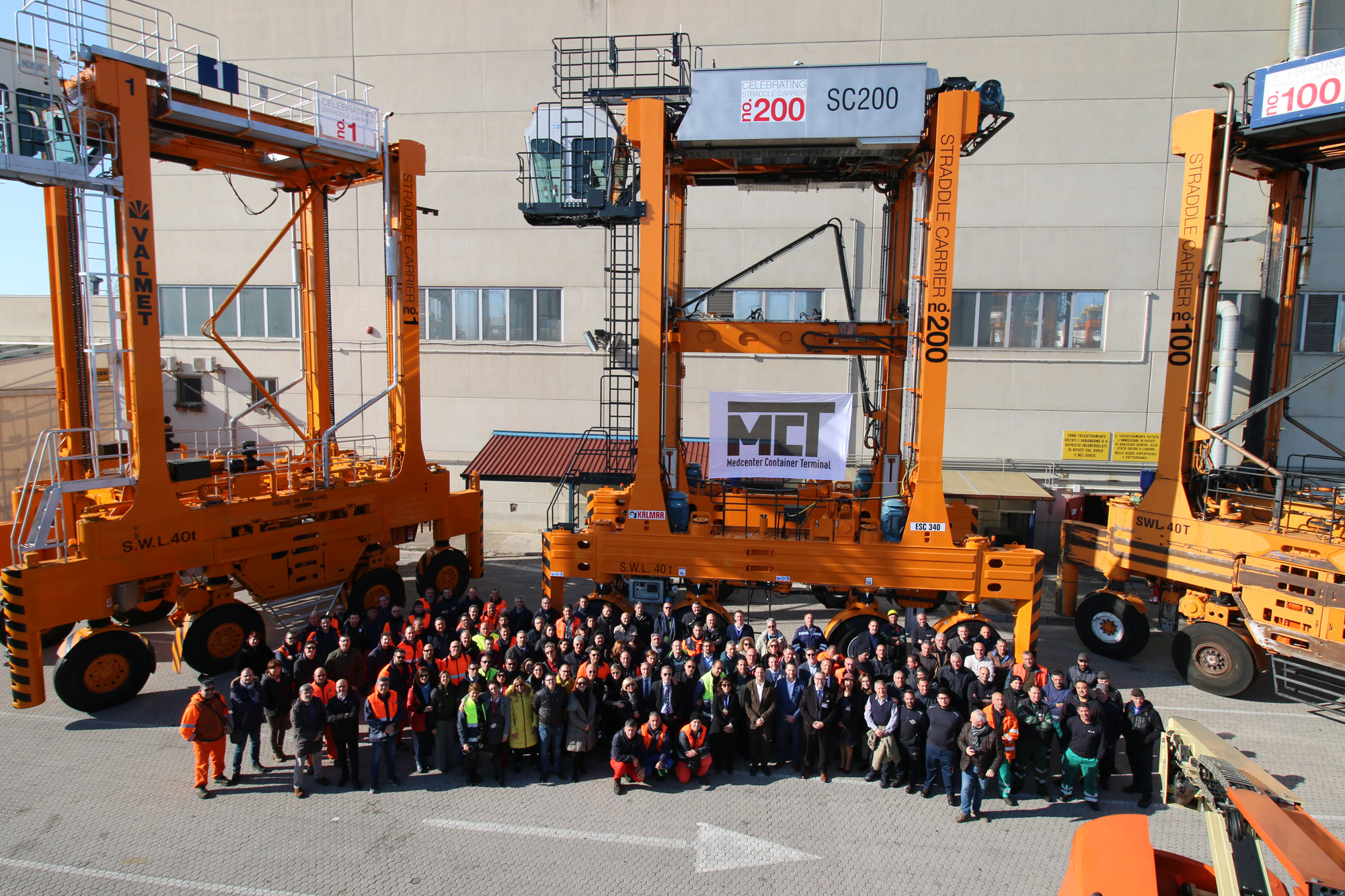 Kalmar, part of Cargotec, and Italy's Medcenter Container Terminal (MCT), are celebrating the delivery of the terminal's 200th straddle carrier. The two companies participated in a joint event on 15 January in recognition of their long-standing partnership. Located in the southern Italian port of Gioia Tauro, MCT is a megaport able to handle the largest vessels deployed on Asia-Mediterranean routes. The terminal has handled more than 50 million TEUs since it opened in September 1995.