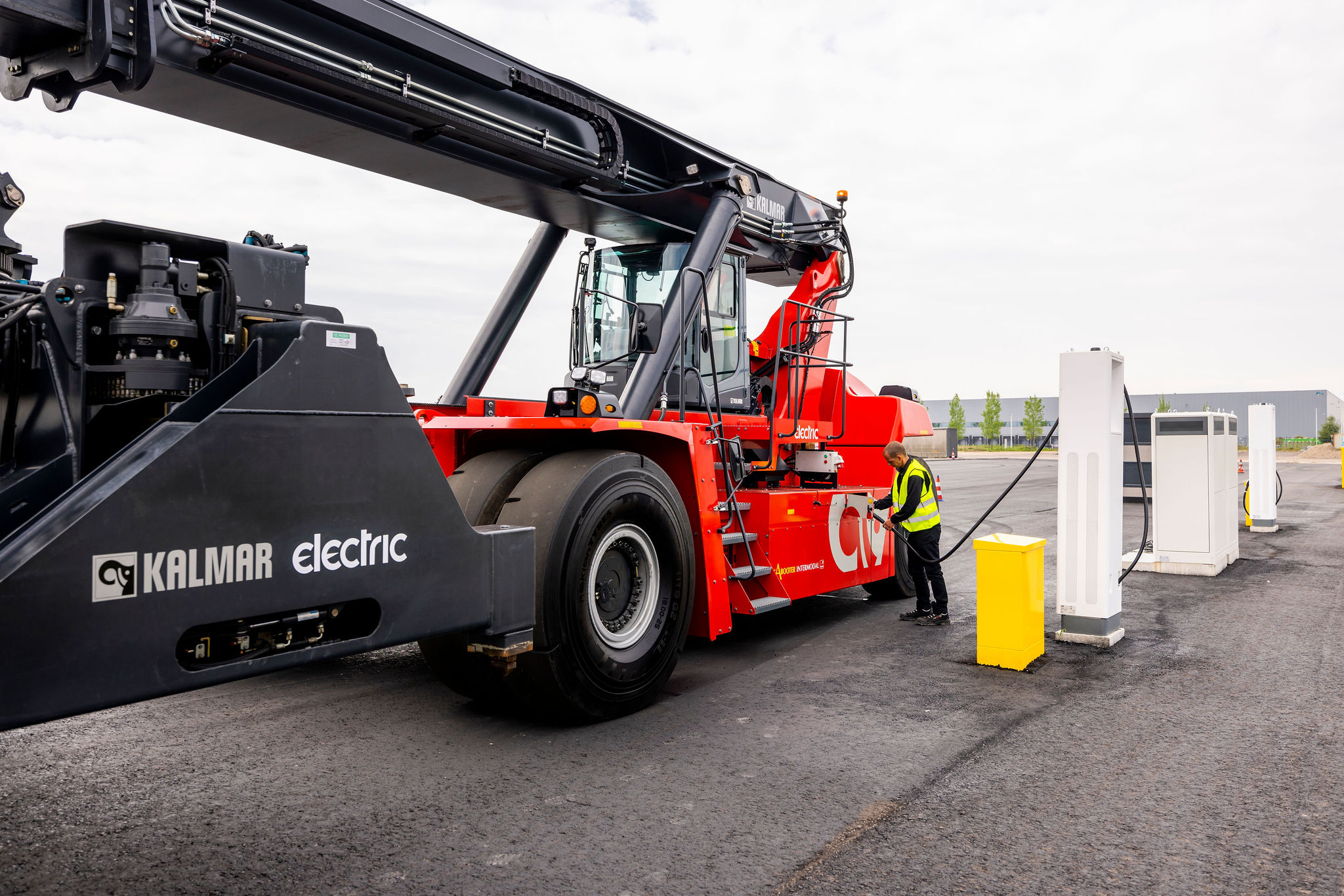 The Kalmar electric reachstacker, which offers lifting capacities of up to 45 tonnes, improves the eco-efficiency of cargo-handling operations while allowing customers to maintain the highest levels of productivity and safety. The reachstacker is available with a range of modular battery options and charging solutions. Kalmar is currently the only supplier manufacturing fully electric reachstackers in Europe.
