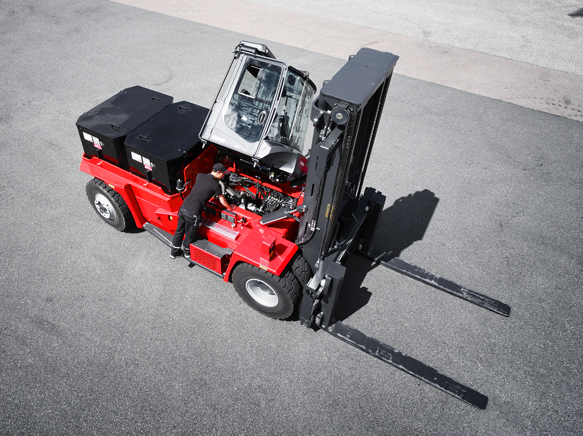 Sähköisen voimalinjan omaavan trukin kuljettaja huomaa nopean ja jouhevan kiihtyvyyden ja entistä herkemmän ohjattavuuden samalla kun lasteja voidaan käsitellä jopa 18-tonniin asti tehokkaasti ja turvallisesti. Sähköinen voimalinja vaatii vähemmän huoltoja ja ylläpitoa, koska siinä on vähemmän liikkuvia ja mekaanisia osia. Tämän lisäksi voit käyttää konetta optimaalisesti laajalla lämpötilaskaalalla, koska Kalmarin Thermal Management järjestelmä on asennettu vakiona litiumion akkuihin.